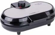 Мощность 1000 Вт, антипригарное покрытие, 2 поверхности, каждая на 5 бельгийских вафель в форме сердечка, индикация работы и нагрева, регулируемый термостат, корпус из термостойкого пластика, декорированного нержавеющей сталью, цвет: черный / серый