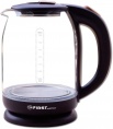 Мощность 1500 Вт, максимальный объем 1.8 литра, скрытый нагревательный элемент, поворачивающийся на 360° корпус, шкала уровня воды, автоматическое отключение при закипании воды, отключение при отсутствии воды, корпус из экологического термостойкого стекла, внутренняя подсветка корпуса, место для хранения шнура, цвет: черный