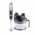 Мощность 700 Вт, 1 скорость + режим «Турбо», нож из нержавеющей стали, насадка-блендер, подвесная петля, большая чаша на 2 л, 2 насадки для нарезки кубиками крупного и среднего размера, диски для измельчения и двухсторонний диск для нарезки ломтиками и шинковки, эргономичный дизайн, цвет: черный/белый