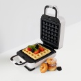 Мощность 700 Вт, индикатор нагрева, антипригарное покрытие рабочей поверхности, 2 двойные сменные формы: для венских вафель; для приготовления пончиков, фиксаторы сменных форм, длина шнура питания 70 см, цвет: белый