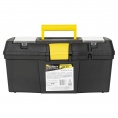 Ящик предназначен для хранения и удобства транспортировки ручного и электроинструмента. Изготовлен из полипропилена и имеет ребра жесткости, которые обеспечивают повышенную прочность при ощутимой нагрузке. Внутренний съемный лоток позволяет хранить крепежные изделия и принадлежности, а также ограничить перемещение инструментов внутри ящика при неполной загрузке. Объемное внутреннее пространство позволяет размещать различные небольшие предметы в одном месте. Ящик имеет два органайзера для мелких деталей, располагающиеся на крышке, что позволят всегда держать необходимые расходные материалы под рукой во время ремонта. Крышка оснащена защелками, которые надежно защищают от непреднамеренного открывания. Удобная складная ручка обеспечивает комфортную транспортировку.