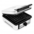 Мощность 1200 Вт, бельгийские вафли, форма для двух вафель, антипригарное покрытие, термостат для поддержания постоянной температуры поверхностей, индикация включения и нагрева, независимый нагрев для каждой половинки формы, цвет: белый