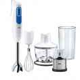 Погружной, мощность 700 Вт, 2 скорость, нескользящая рукоятка, корпус пластик, измельчитель - 0.5 л, мерный стакан, кофемолка, венчик, цвет: белый