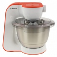 Стационарный, мощность 900 Вт, планетарное вращение чаши "Multi-motion-drive" объемом 3.9 л, 7 скоростей + импульсный режим, венчик для помешивания, венчик для взбивания, крюк для замешивания теста, прозрачная крышка, темно-серая сумка для насадок, автоматическая парковка, световой индикатор работы, отсек для кабеля, материал корпуса: пластик, цвет: белый / оранжевый