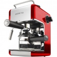 Рожковая, бойлерная, мощность 800 Вт, давление 4 бар, возможность приготовления до 4 порций кофе, используемый кофе молотый, насадка для приготовления капучино, моющийся фильтр, съемный поддон, подсветка кнопок, красный/нержавеющая сталь