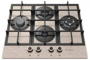 (Ш*Г): 600*525 мм, 4 газовые конфорки на стекле, 1 конфорка WOK, чугунные решетки, автоподжиг, газ-контроль, цвет: бежевый с рисунком "камень"