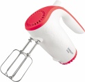 Мощность 500 Вт, 5 скоростей, 2 венчика для взбивания, 2 крюка для размешивания теста, кнопка извлечения насадок, эргономичная ручка, цвет: белый / красный