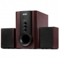 Акустическая система Sven SPS-821 включает в себя сабвуфер и две колонки. На передней панели сабвуфера расположены регуляторы уровня громкости и тембра ВЧ и НЧ, а на задней панели расположены разъемы для подключения различных источников аудио-сигнала. Система выполнена в деревянном корпусе темного цвета.